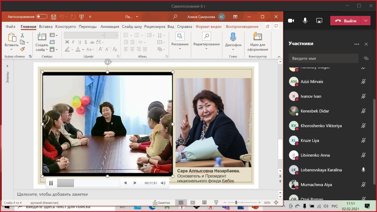 02 ақпан 2021 0 1 2 3 4 5 Показ фильмов об авторе программы нравственно-духовного образования "Самопознание" С.А. Назарбаевой