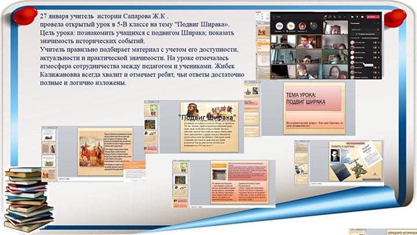 В рамках декады общественно-гуманитарных дисциплин проведен открытый урок по истории Казахстана с учащимися 5В класса. Тема "Подвиг Ширака". Учитель истории Сапарова Ж.К