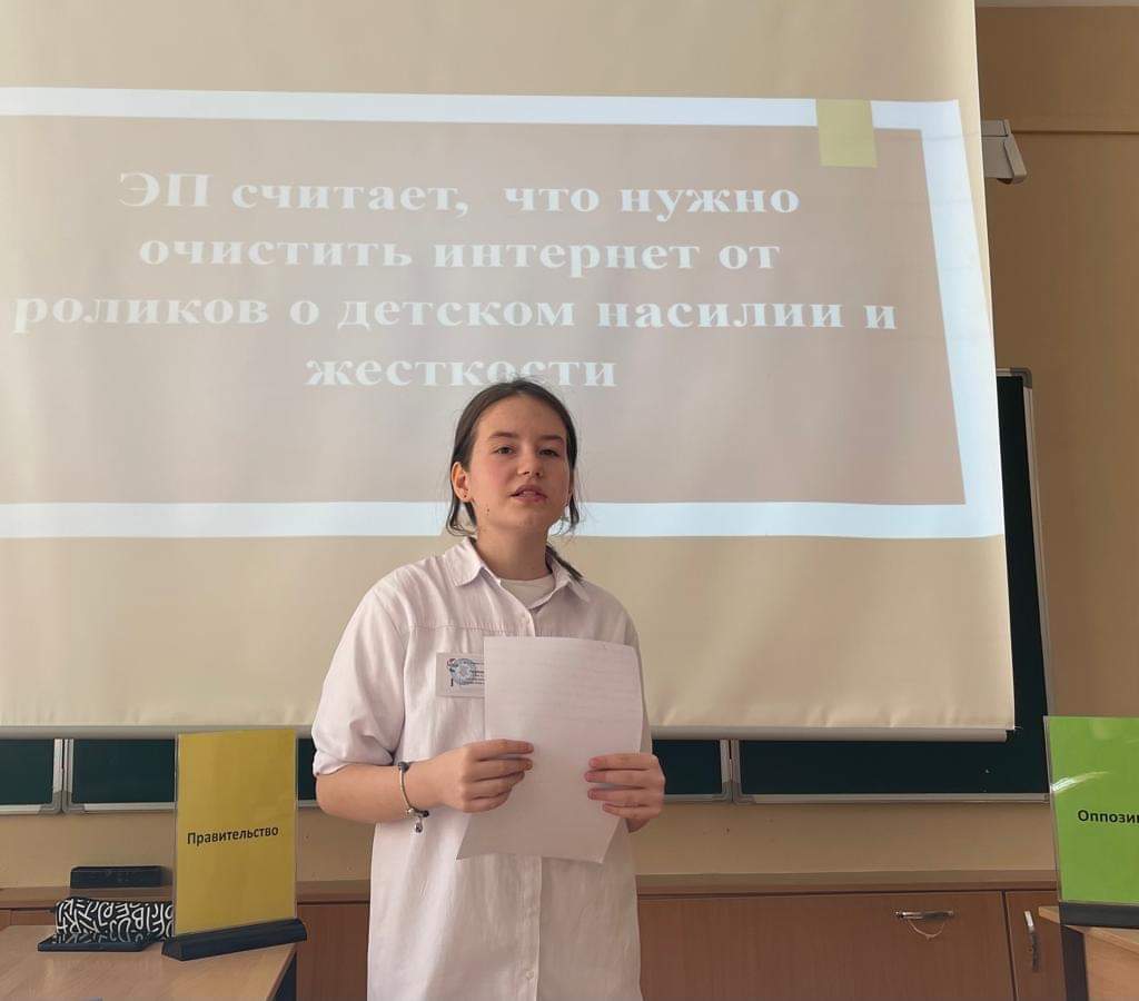 Дебатный турнир среди учащихся 8-х классов, приуроченный к акции «Детство без жестокости и насилия». Турнир проведен в формате АПФ, резолюция "ЭП считает, что нужно очистить интернет от роликов о детском насилии и жесткости".