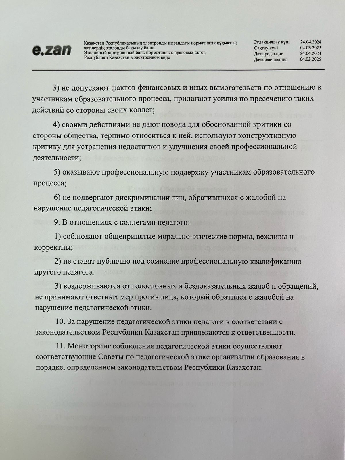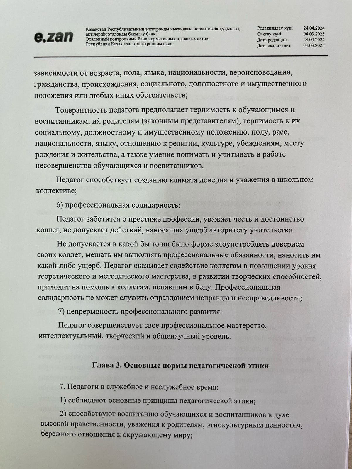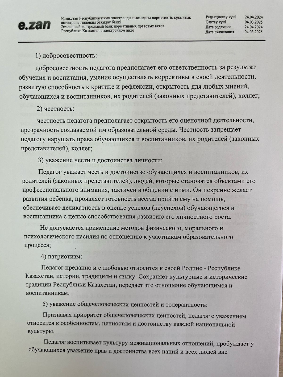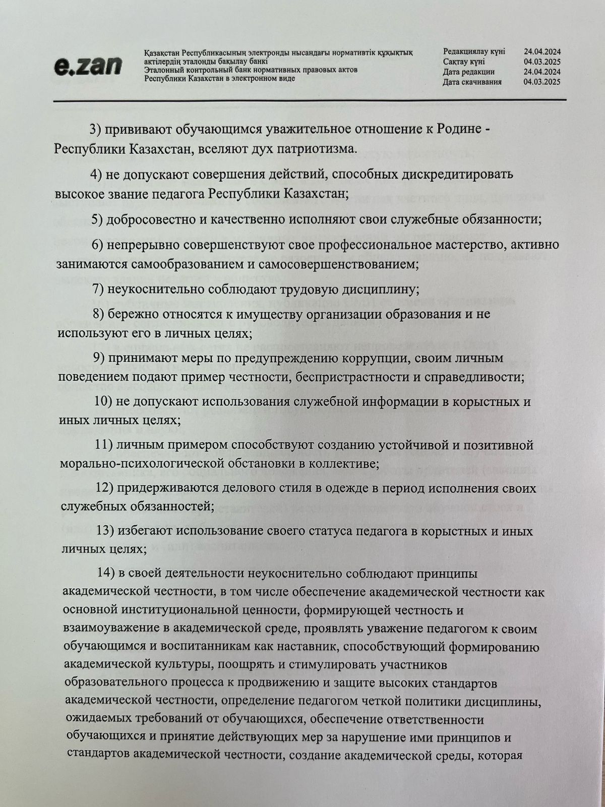 29 тамыз 2024 0 1 2 3 4 5 Педагогикалық әдеп мәселелері бойынша нормативтік құжаттар! О некоторых вопросах педагогической этики! Правила педагогической этики!