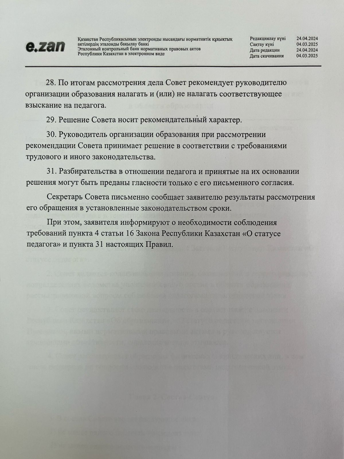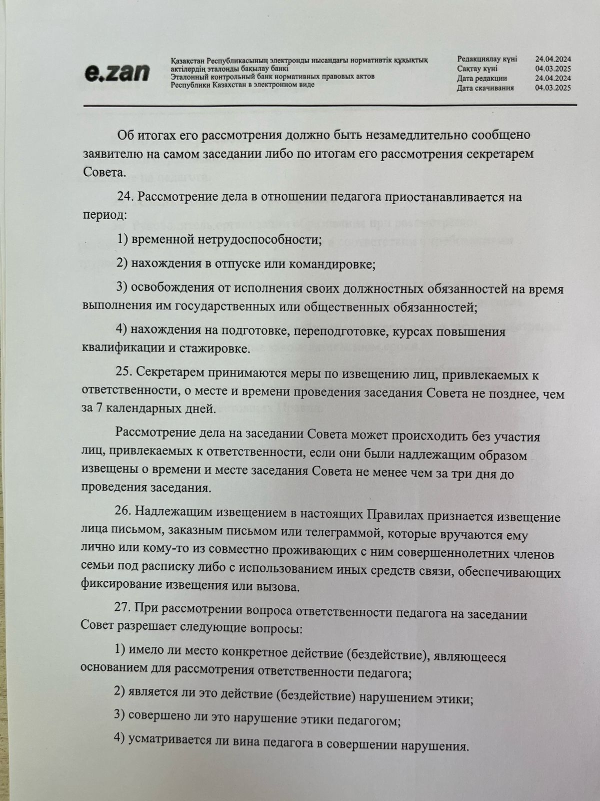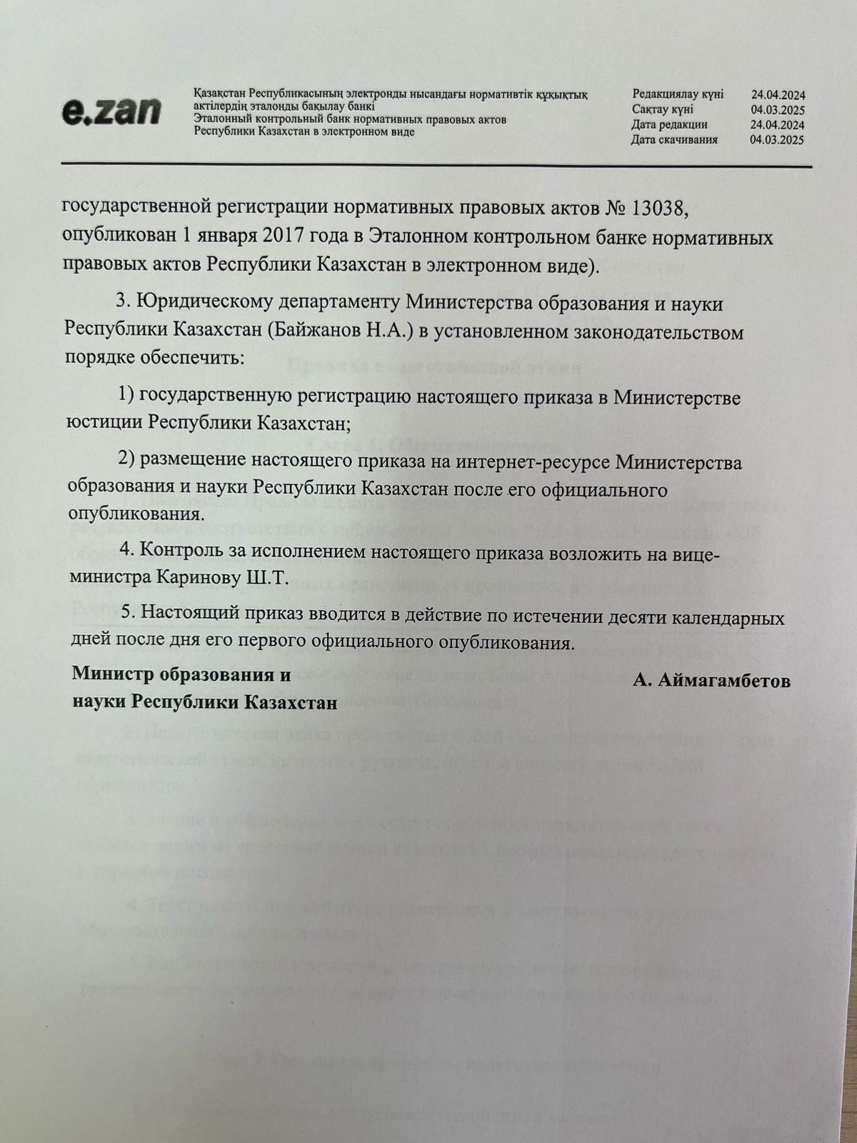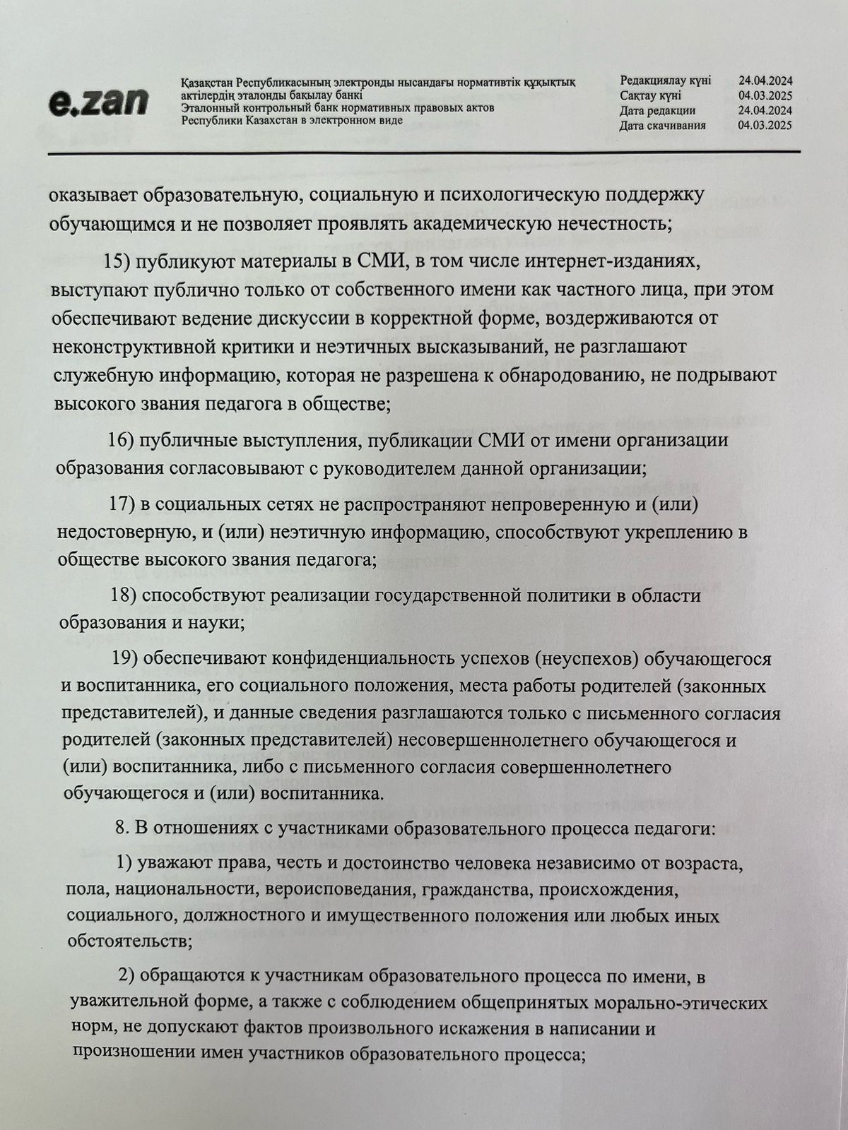 29 тамыз 2024 0 1 2 3 4 5 Педагогикалық әдеп мәселелері бойынша нормативтік құжаттар! О некоторых вопросах педагогической этики! Правила педагогической этики!