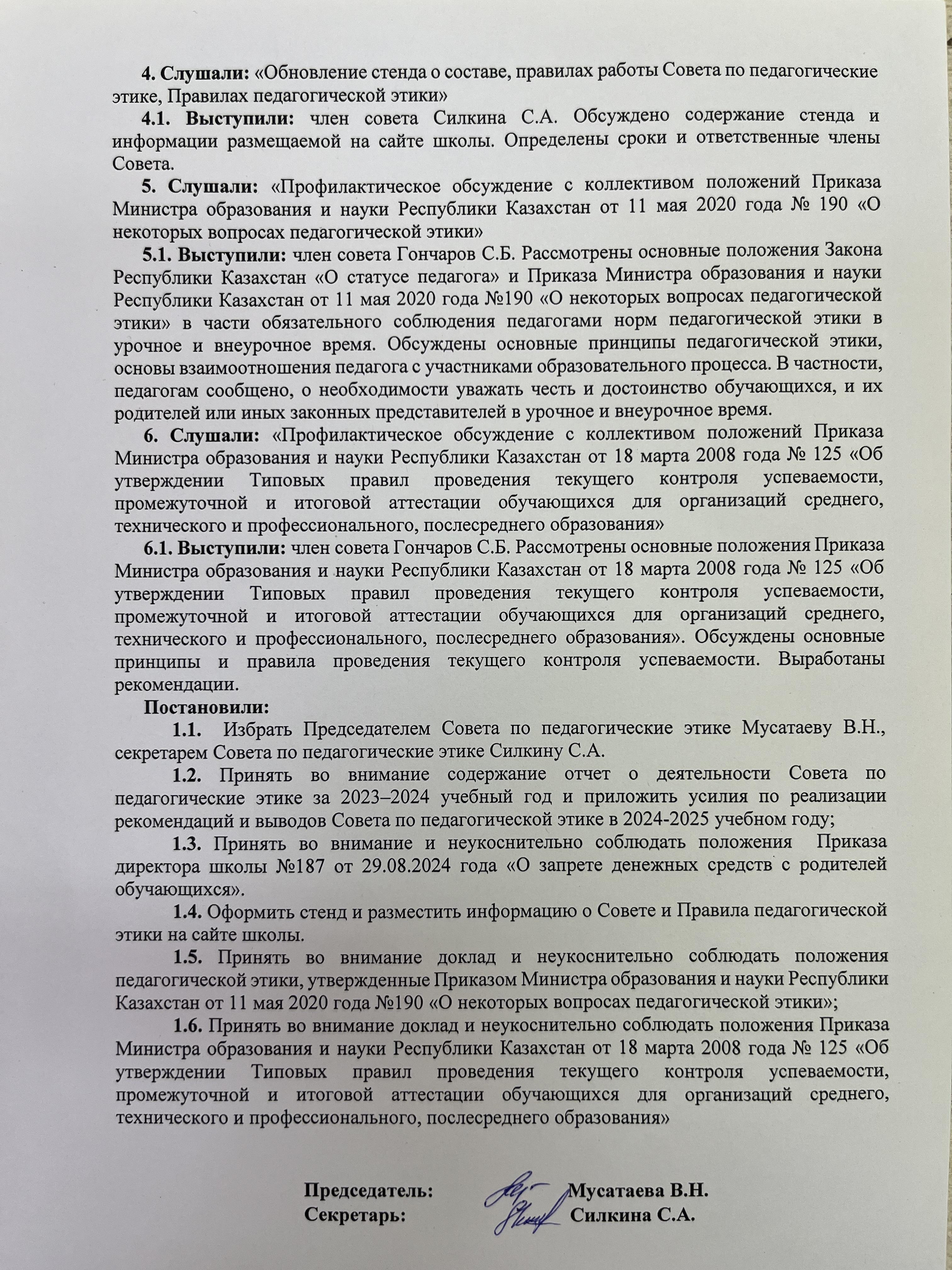 Хаттама №2! Протокол №2 заседания Совета по педагогической этике!