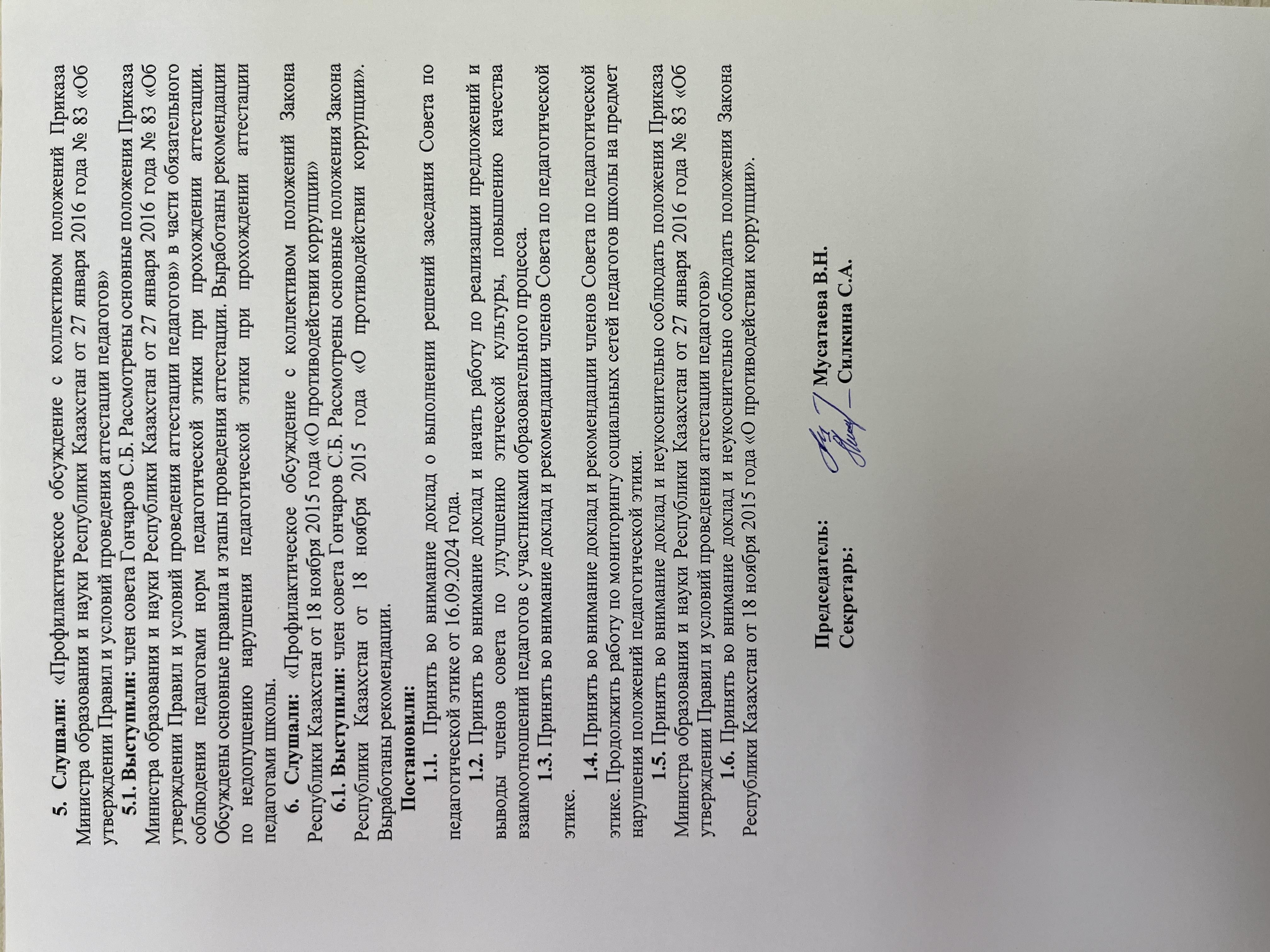 Хаттама №2! Протокол №2 заседания Совета по педагогической этике!