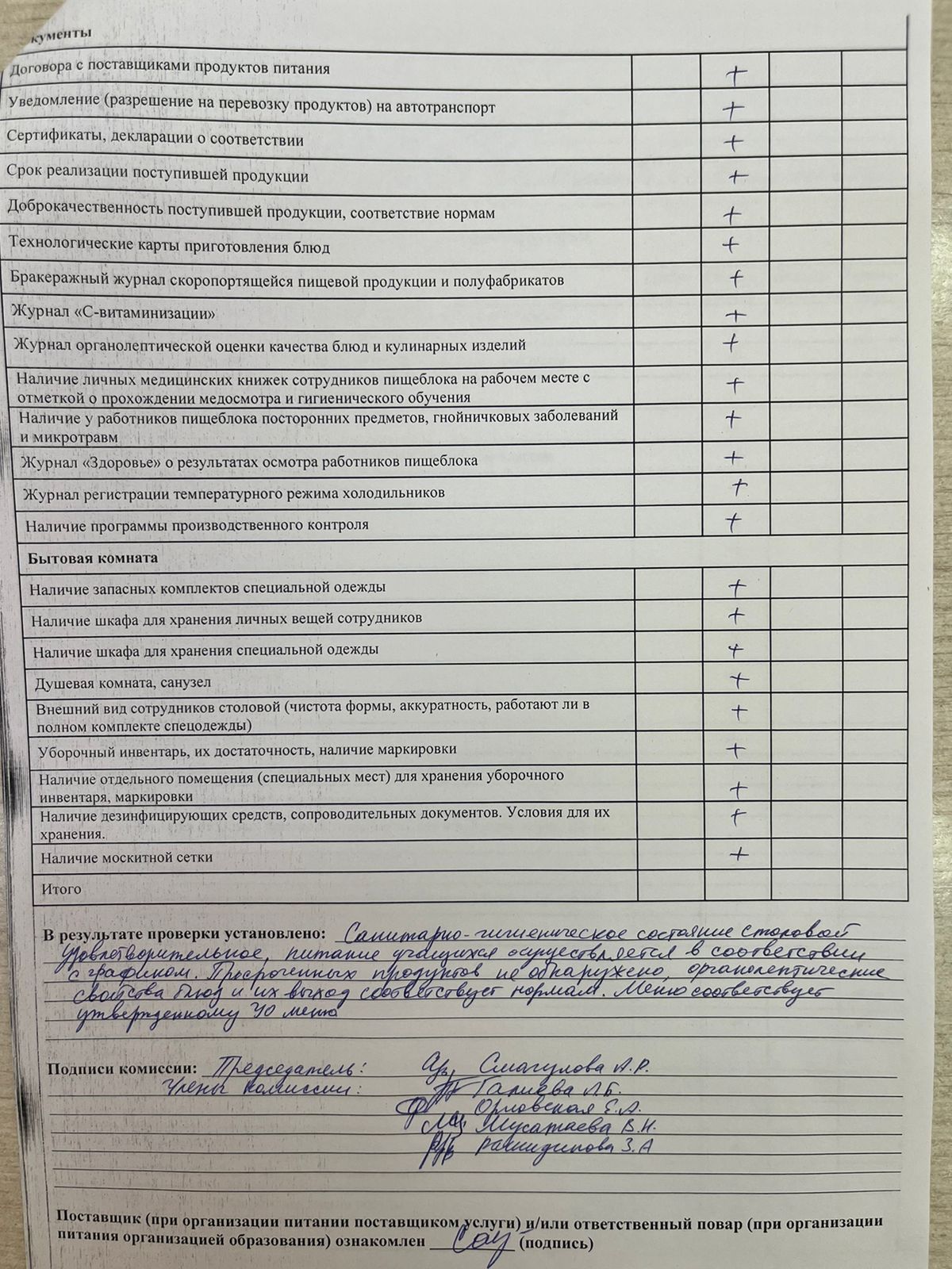 » Тамақ сапасын бақылау актісі! Акт мониторинга качества питания!
