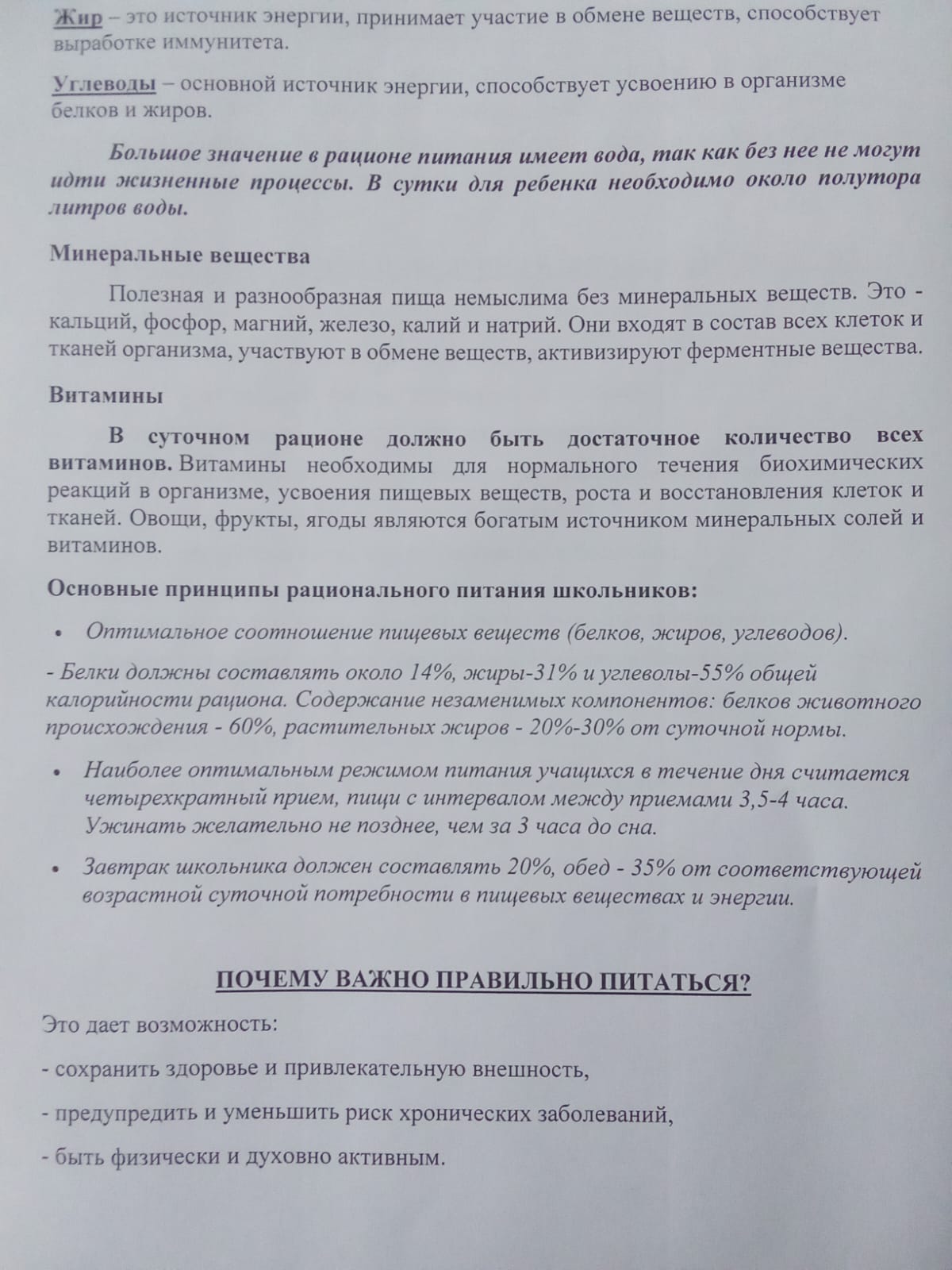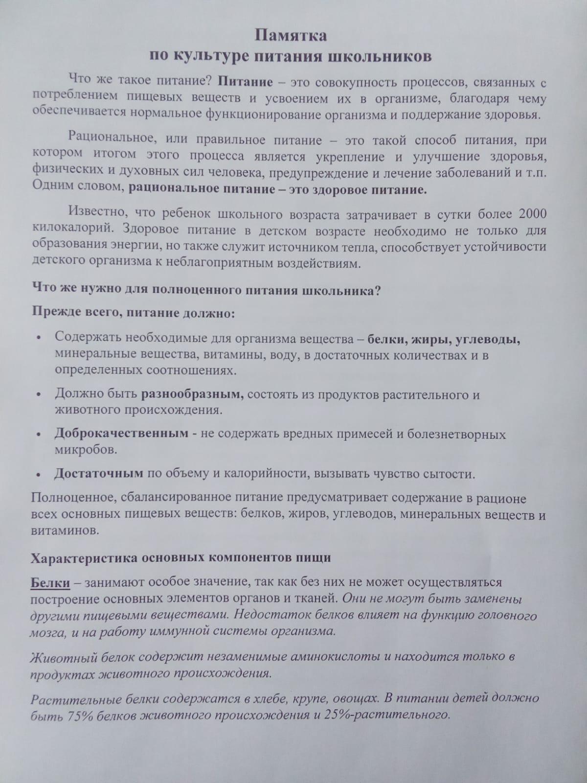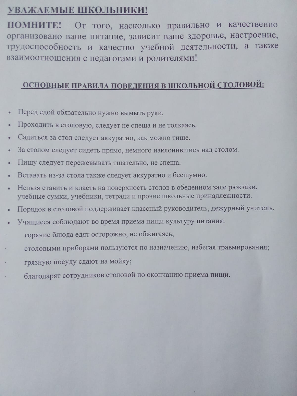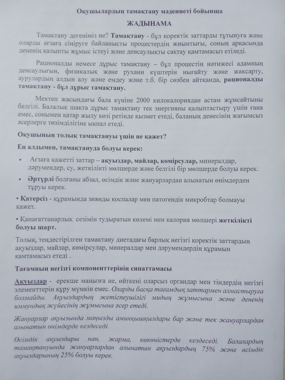 » Оқушылардың тамақтану мәдениеті бойынша Жадынама!