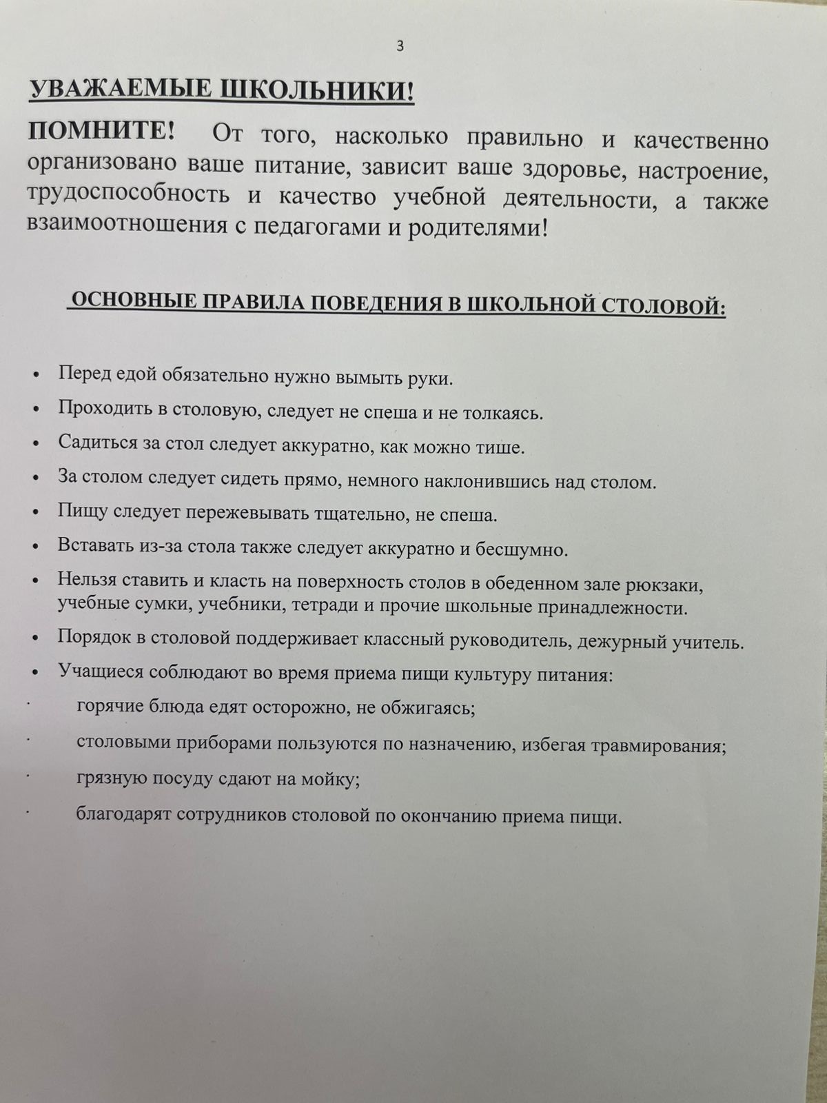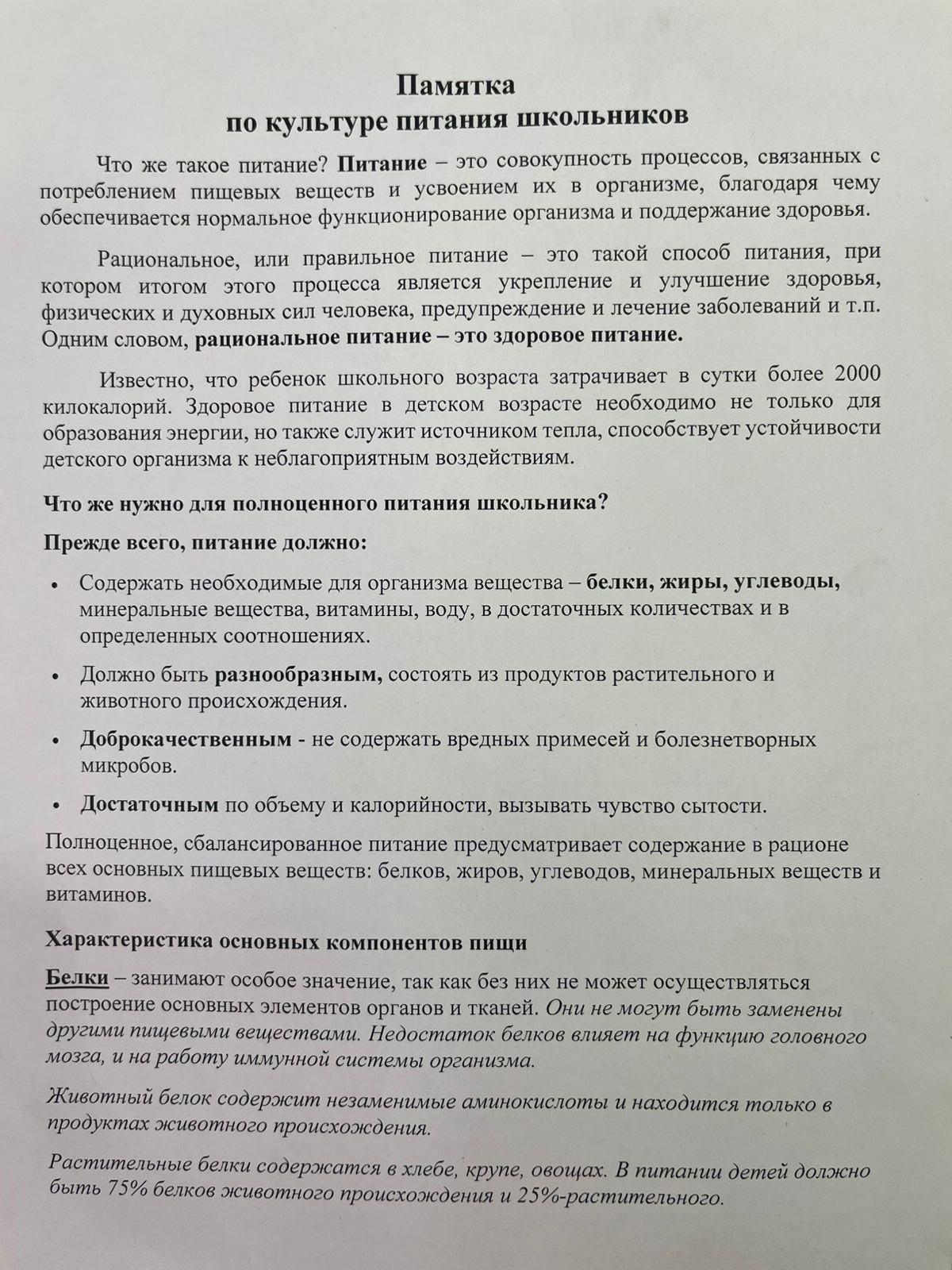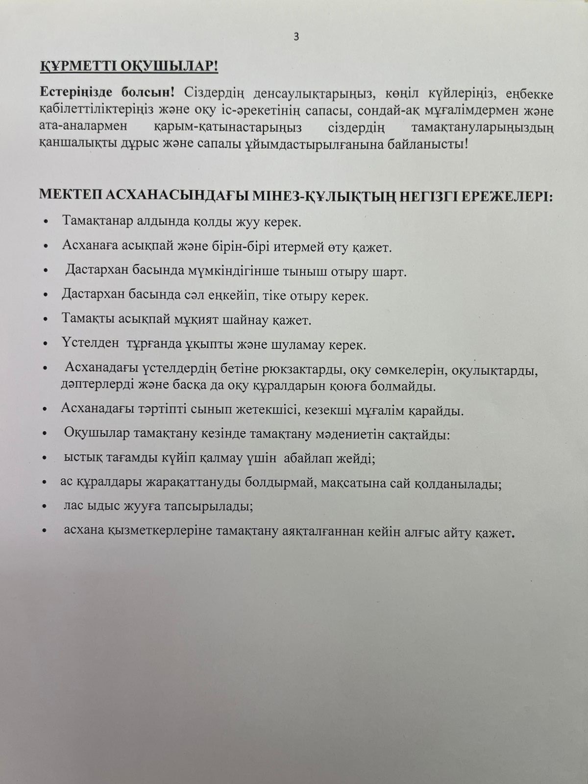 Оқушылардың тамақтану мәліметі бойынша жадынама!