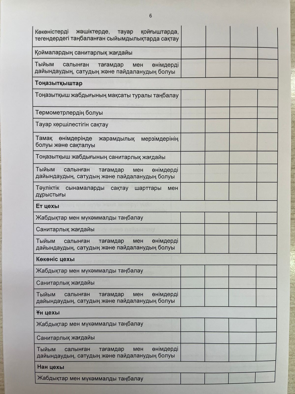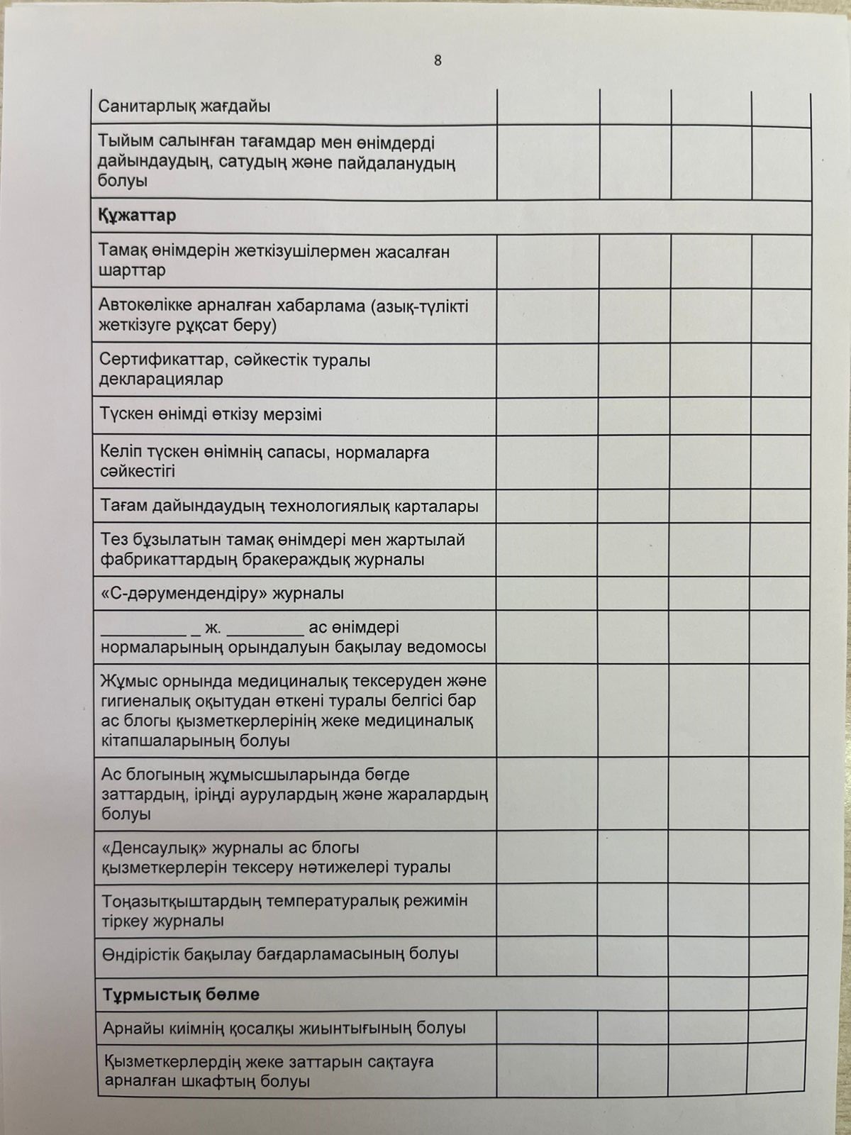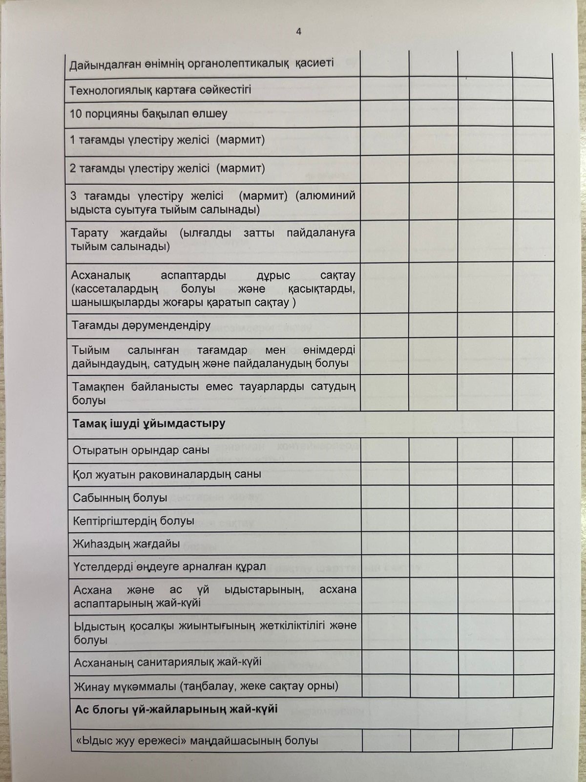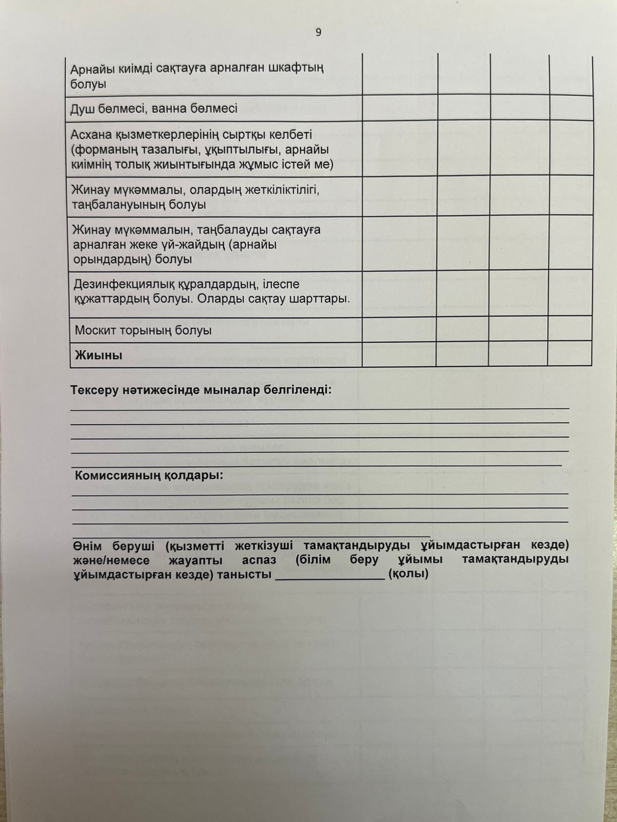 08 қаңтар 2026 0 1 2 3 4 5 Тамақтану сапасына мониторинг жүргізу жөніндегі комиссиялардың (бракераждық комиссиялар) мониторингті жүзеге асыруы бойынша ұсынымдар!